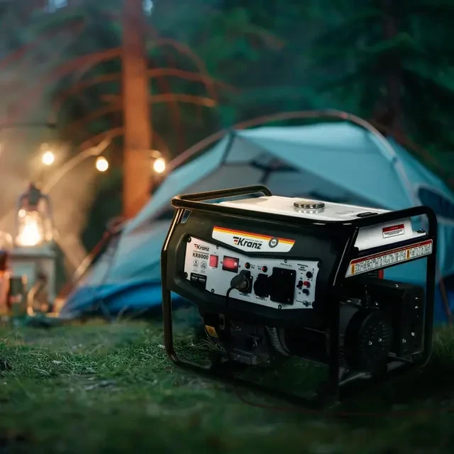 Бензиновый генератор KR8000 предназначен для обеспечения электричеством большого загородного дома, магазина или строительной площадки. Устройство может запитать сразу несколько потребителей, например: обогреватель или кондиционер, насос и электроинструменты. Работает от АИ-92. Многофункциональный дисплей информативно отображает часы работы, напряжение, частоту тока и предупреждает о низком уровне масла. Обмотка альтернатора из 100% меди эффективно проводит ток и минимизирует нагрев при значительных нагрузках. Увеличенный бензобак 25 л гарантирует до 7-8 часов работы. Стальная рама диаметром 32 мм для установки ручек и колес защищает внутренние детали от повреждений. Система поддержания параметров выходного напряжения (AVR) обеспечивает стабильное питание. Многоступенчатая система защиты от повреждений гарантирует безопасность работы. Функция Duplex предоставляет возможность работы с реактивными потребителями, такими как компрессор, насос, электроинструменты и т.д. Усиленная балка крепления двигателя и демпферные подушки снижают уровень вибраций. 1-цилиндровый 4-тактный двигатель (460 см3) с воздушным охлаждением, стальным распредвалом и литыми поршнями обеспечивает эффективную работу. Генератор оборудован усиленным шнуром стартера, свечой зажигания Bosch, пылевлагозащитной кнопкой включения IP65, 2 евро розетками (16 А), 1 силовой розеткой (32 А) и выходом на 12 В. Предусмотрены индивидуальные предохранители для каждой розетки.