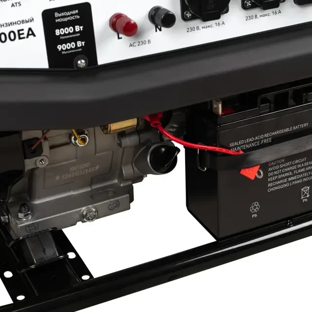 Бензиновый генератор KR9000EA с коннектором автоматики 5-PIN предназначен для обеспечения электричеством большого загородного дома, магазина или строительной площадки. Работает от АИ-92. Оснащен автоматической системой переключения питания основной сети электроснабжения на генератор для резервного питания электросети (для подключения требуется блок автоматики). Электростартер с автоматической воздушной заслонкой карбюратора облегчает запуск генератора с поворота ключа. Многофункциональный дисплей информативно отображает часы работы, напряжение, частоту тока и предупреждает о низком уровне масла. Обмотка альтернатора из 100% меди эффективно проводит ток и минимизирует нагрев при значительных нагрузках. Увеличенный бензобак 25 л гарантирует 7-8 часов работы. Стальная рама диаметром 32 мм для установки ручек и колес защищает внутренние детали от повреждений. Система поддержания параметров выходного напряжения (AVR) обеспечивает стабильное питание. Клеммы переменного тока 220В облегчают подключение электрической сети без дополнительной коммутации. Многоступенчатая система защиты от повреждений гарантирует безопасность работы. Функция Duplex предоставляет возможность работы с реактивными потребителями, такими как компрессор, насос, электроинструменты и т.д. Усиленная балка крепления двигателя и демпферные подушки снижают уровень вибраций. 1-цилиндровый 4-тактный двигатель (460 см3) с воздушным охлаждением, стальным распредвалом и литыми поршнями обеспечивает эффективную работу. Генератор оборудован усиленным шнуром стартера, свечой зажигания Bosch, пылевлагозащитной кнопкой включения IP65, 2 евро розетками (16 А), 1 силовой (32 А) и выходом на 12 В. Предусмотрены индивидуальные предохранители для каждой розетки. В комплекте поставляется аккумулятор.