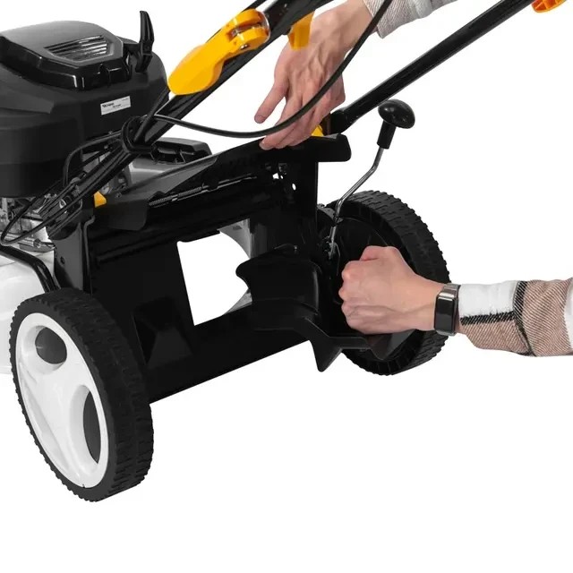 Самоходная бензиновая газонокосилка KR-510SP – это высокоэффективное оборудование для ухода за газоном. Газонокосилка обладает несколькими режимами работы: боковой выброс травы, сбор травы в специальный травосборник и выброс травы под деку. Предусмотрена функция мульчирования, при которой срезанная трава мелко измельчается и распределяется по поверхности газона для его удобрения. Привод на колеса делает косилку самоходной, что облегчает ее перемещение по участку. Передние колеса диаметром 205 мм и задние колеса диаметром 255 мм создают надежное сцепление с поверхностью и позволяют газонокосилке легко маневрировать даже на неровных участках. Комбинированный травосборник из пластика и мягкой ткани легок в уходе и имеет флажок для указания заполненности. Быстрозажимные эксцентриковые фиксаторы позволяют быстро сложить газонокосилку для хранения. Насос подкачки топлива (праймер) обеспечивает быстрый старт двигателя даже после долгого простоя. Воздушный фильтр эффективно предотвращает попадание твердых частиц в цилиндр двигателя, гарантируя долгий срок службы и надежную работу. Штуцер для мойки рабочей части газонокосилки значительно упрощает процесс очистки от травы и грязи. В комплекте поставляется дополнительный аэродинамический нож.