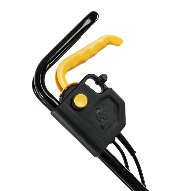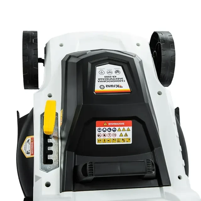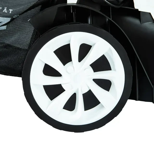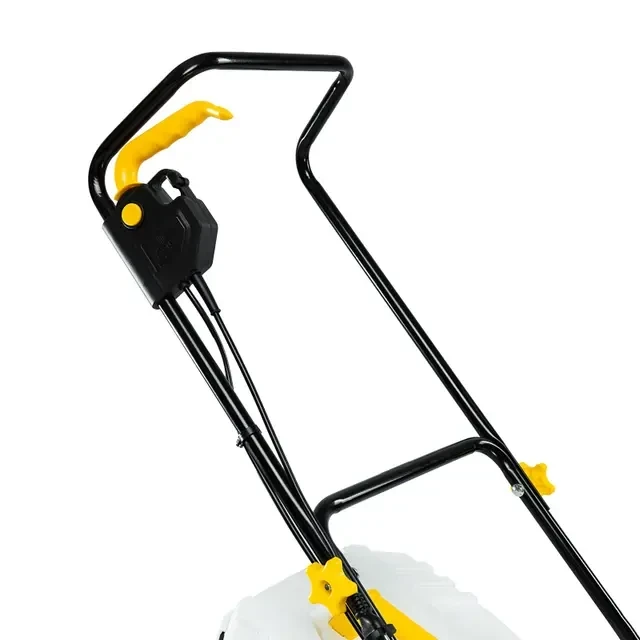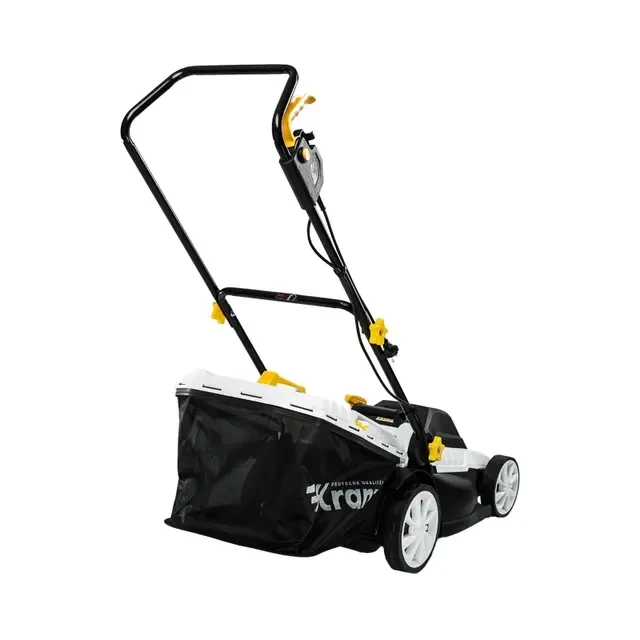 Электрическая газонокосилка предназначена для стрижки газона на участках небольшой площади. Подходит только для бытового применения. Управление косилкой осуществляется с помощью скобы, что позволяет пользователю держать руки в удобном положении и управлять одной рукой, если это потребуется. Широкие колеса также облегчают управление и перемещение. Мягкое вспененное резиновое покрытие на рукоятке снижает уровень вибрации и делает работу более комфортной. С помощью эксцентриковых зажимов рукоятка быстро складывается и раскладывается. Комбинированный травосборник из прочного пластика и сетчатого материала легко очищается и удобно хранится в сложенном виде. Для указания заполненности предусмотрен флажок. Газонокосилка работает стабильно без перегрузок. Медная обмотка двигателя гарантирует высокую производительность и способствует стабильной работе. При достижении максимально допустимой температуры предохранитель отключает мотор, предотвращая его повреждение. Конденсатор предохраняет электросеть от помех при запуске косилки. Центробежный тормоз моментально останавливает нож, обеспечивая безопасность эксплуатации, особенно в экстренных ситуациях. Ударопрочный корпус и ременная передача защищают двигатель от повреждений при внезапной остановке или столкновении с препятствием. Также наличие ременной передачи облегчает техническое обслуживание газонокосилки.