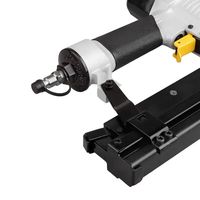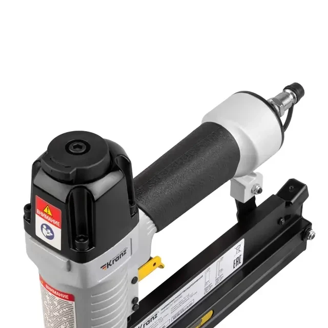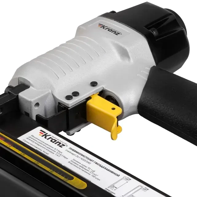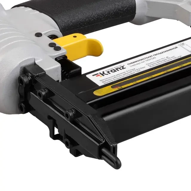 Пневмопистолет (нейлер) 2 в 1 предназначен для быстрого забивания гвоздей и скоб. Используется при выполнении различных производственных и строительных работ. Инструмент работает от компрессора на сжатом воздухе. Легко подключается к компрессору с помощью быстросъемного соединителя Rapid (EURO) с резьбой 1/4". Пневмопистолет способен забивать гвозди от 15 до 50 мм, а также скобы от 16 до 40 мм. Вместимость магазина – 100 шт. Рабочее давление – от 5,5 до 8,3 бар. Регулировка глубины забивания гвоздей и скоб обеспечивает качественное и аккуратное выполнение работ. За счет увеличенного расстояния между рукояткой и открытой обоймой (85 мм) установка цельной кассеты со скобами осуществляется без разделения скоб на части. Благодаря прорезиненной рукоятке нейлер не скользит в руках, что делает работу более удобной и комфортной. Пневматический нейлер является пожаробезопасным инструментом. В комплекте поставляются 2 кассеты гвоздей размером 50 мм и 2 кассеты скоб размером 40 мм.