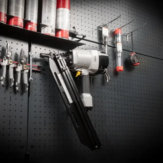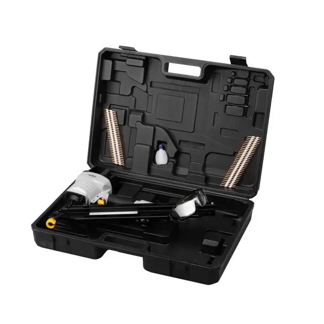 Пневмопистолет (нейлер) предназначен для быстрого забивания гвоздей. Используется при выполнении различных производственных и строительных работ. Инструмент работает от компрессора на сжатом воздухе. Легко подключается к компрессору с помощью быстросъемного соединителя Rapid (EURO) с резьбой 1/4". Пневмопистолет способен забивать гвозди от 50 до 90 мм. Вместимость магазина – 60 шт. Угол наклона магазина – 21 градус. Рабочее давление – от 5,5 до 8,3 бар. Благодаря прорезиненной рукоятке нейлер не скользит в руках, что делает работу более удобной и комфортной. Пневматический нейлер является пожаробезопасным инструментом. В комплекте поставляются 2 кассеты гвоздей размером 50 мм.