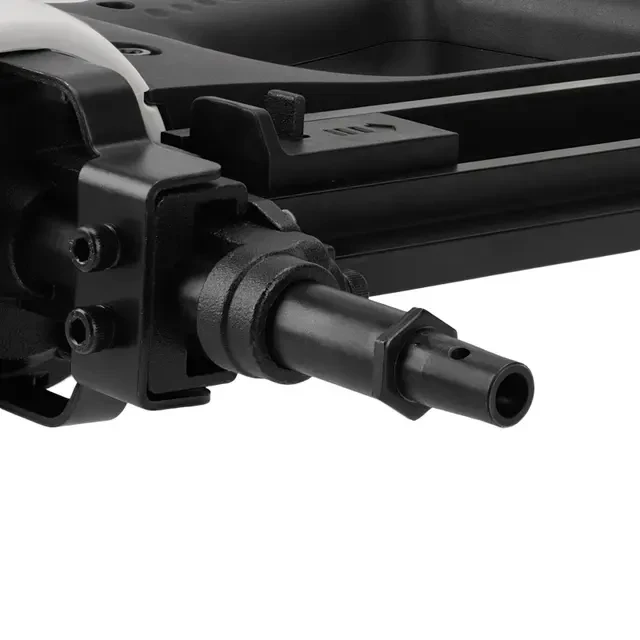Гвоздезабивной газовый пистолет предназначен для быстрого монтажа крепежных изделий к бетонным поверхностям, кирпичной кладе и изделиям из металлопроката. Инструмент обладает силой удара в 100 Дж, что позволяет забивать гвозди длиной от 15 до 40 мм и диаметром от 2,7 до 3,05 мм. Емкость магазина – 30 гвоздей. Одного газового баллона хватает на 1100 гвоздей. Длина баллона без учета пластикового клапана 165 мм. При производстве применяются современные технологии закалки. Твердость сопел равна 52 HRC, что уменьшает износ и способствует стабильной, надежной и продолжительной работе инструмента. Твердость бойка – 62 HRC. Для увеличения ресурса инструмента в электродвигателе используют высококачественные японские компоненты. Цилиндры (камера сгорания) произведены из литого алюминия. Обработка поверхности цилиндров осуществляется на станках с ЧПУ, что способствует более высокой точности обработки всех деталей и сокращению брака. В комплекте поставляются 3 быстросъемные насадки для работы с различным крепежом.