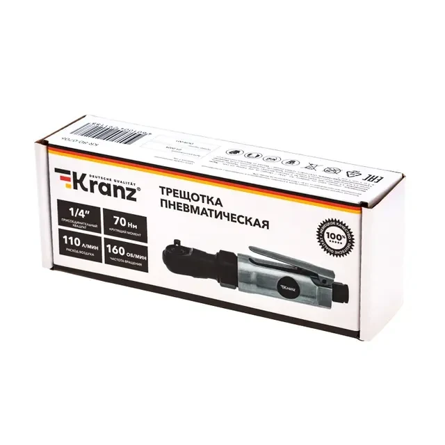Пневматическая трещотка предназначена для быстрого закручивания и выкручивания резьбового крепежа. Применяется на предприятиях машиностроения, станциях технического обслуживания, а также в сборочных и слесарных цехах, частных мастерских и шиномонтажных центрах. Компактный корпус изделия обеспечивает удобство при работе в труднодоступных местах, где невозможно использование стандартного гайковерта. Небольшой расход воздуха позволяет использовать компрессор небольшой мощности. Благодаря высокому качеству комплектующих и использованию индустриальных подшипников, пневматическая трещотка обладает большим рабочим ресурсом, устойчива к перегрузкам и позволяет на протяжении длительного времени производить работы без остановки. Присоединительный квадрат – 1/4″. Максимальный крутящий момент – 70 Нм. Частота вращения вала – 160 об/мин.