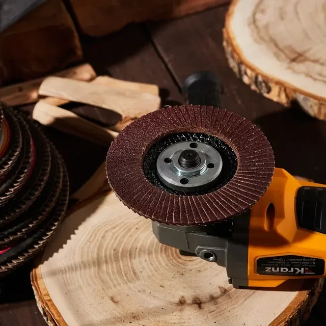 Лепестковый торцевой круг применяется совместно с ручными угловыми шлифовальными машинами (болгарками) соответствующего диаметра. Шлифовальные диски предназначены для предварительной, промежуточной и финишной обработки металла, дерева, пластика и других материалов. Конструктивная особенность кругов – веерное расположение лепестков абразивного материала, что обеспечивает плавную работу круга и отсутствие перегрева в зоне шлифования. Лепестковый круг изготовлен из шлифовальной шкурки на тканевой основе. Благодаря торцевому типу диска (T-29) увеличивается пятно контакта, что повышает скорость обработки поверхности и уменьшает возможность возникновения дефектов в виде зарезов, ям и прижогов. Тканевая основа лепестков равномерно изнашивается в процессе работы и открывает следующий слой абразива, позволяя полностью использовать ресурс круга. Наружный диаметр – 115 мм, посадочный – 22,2 мм. Max 12200 RPM.