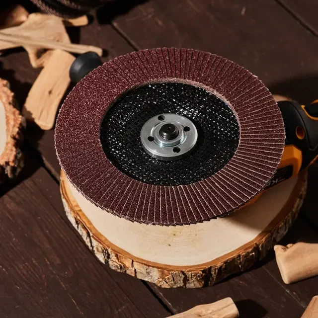 Лепестковый торцевой круг применяется совместно с ручными угловыми шлифовальными машинами (болгарками) соответствующего диаметра. Шлифовальные диски предназначены для предварительной, промежуточной и финишной обработки металла, дерева, пластика и других материалов. Конструктивная особенность кругов – веерное расположение лепестков абразивного материала, что обеспечивает плавную работу круга и отсутствие перегрева в зоне шлифования. Лепестковый круг изготовлен из шлифовальной шкурки на тканевой основе. Благодаря торцевому типу диска (T-29) увеличивается пятно контакта, что повышает скорость обработки поверхности и уменьшает возможность возникновения дефектов в виде зарезов, ям и прижогов. Тканевая основа лепестков равномерно изнашивается в процессе работы и открывает следующий слой абразива, позволяя полностью использовать ресурс круга. Наружный диаметр – 180 мм, посадочный – 22,2 мм. Max 12200 RPM.