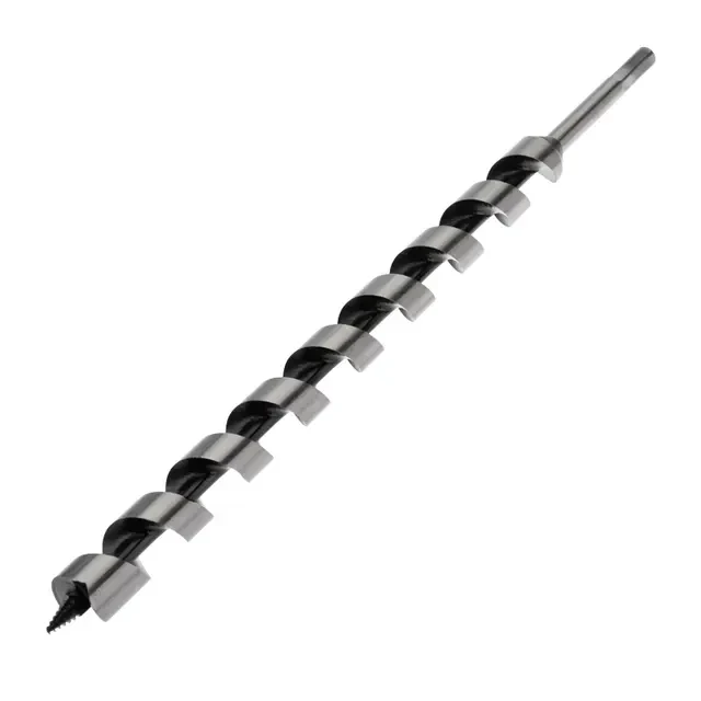 Винтовое сверло предназначено для сверления отверстий под нагели, дюбели. Используется при выполнении строительных, ремонтных и столярных работ. Сверло выполнено из закаленной инструментальной стали, что повышает износостойкость и долговечность инструмента. Центрирующее острие на конце рабочей части позволяет удобно засверливаться в материал и уменьшает осевую нагрузку, шнековая спираль Левиса обработана до зеркального блеска, из-за чего отверстия получаются гладкими, а стружка отводится более эффективно. Хвостовая часть, выполненная в виде шестигранника, надежно фиксирует сверло в патроне инструмента. Устанавливается на дрель или шуруповерт с высоким крутящим моментом.