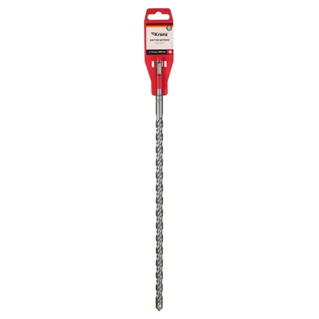 Бур по бетону с хвостовиком SDS PLUS 14x400 мм KRANZ используется во время строительных и ремонтных работ. Предназначен для сверления и бурения отверстий в слабоармированном бетоне, граните, кирпичной кладке и камне при помощи перфоратора с креплением SDS PLUS, которое используется в большинстве электроинструментов бытового и профессионального назначения. Изделие выполнено из качественной стали, что обеспечивает долгий ресурс работы и высокую производительность. Конструкция со стабилизирующей спиралью сохраняет точное положение бура во время сверления и равномерно распределяет ударную нагрузку, кромки с 2 гранями обеспечивают легкое выведение шлама и мелких частиц пыли из рабочей зоны, что поддерживает скорость работы, а усиленный резец предотвращает заклинивание оснастки в арматуре. Твердосплавная вставка на конце бура способствует эффективному входу в материал, что увеличивает цикл службы оснастки и уменьшает износ сверла. Технические характеристики: Диаметр: 14 мм Тип хвостовика: SDS PLUS Общая длина: 400 мм Рабочая длина: 340 мм Количество граней: 2 Материал тела бура: инструментальная сталь (40cr) Материал вставки на конце бура: карбидный сплав (YG8C)