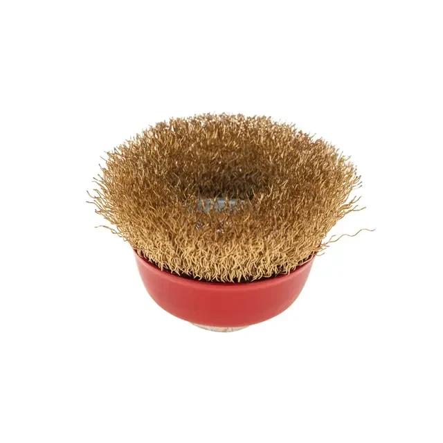 Чашечная щетка KRANZ применяется в составе угловой шлифовальной машины для очистки разнообразных металлических деталей и заготовок от слоя краски, лака, заусенцев, ржавчины, окалины или нагара. Подходит для обработки и выравнивания сварочных швов на стальных поверхностях. Витая щетина из латунированной проволоки оптимально подходит для аккуратной обработки и шлифовки, позволяет удалить тонкий слой материала, а также придать поверхности глянцевый блеск. Латунированная проволока имеет высокую устойчивость к коррозии, а при работе возникает меньше искр. Чашечная форма позволяет обрабатывать поверхности с большой площадью, а также обеспечивает улучшенное прилегание и равномерное распределение давления при чистке. Тип соединения М14 обеспечивает простоту и надежность установки на УШМ. Инструмент соответствует действующим стандартам качества и подходит для использования в условиях интенсивного и сложного труда.
