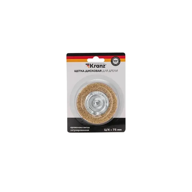 Щетка дисковая для дрели, витая латунированная проволока, 75мм KRANZ