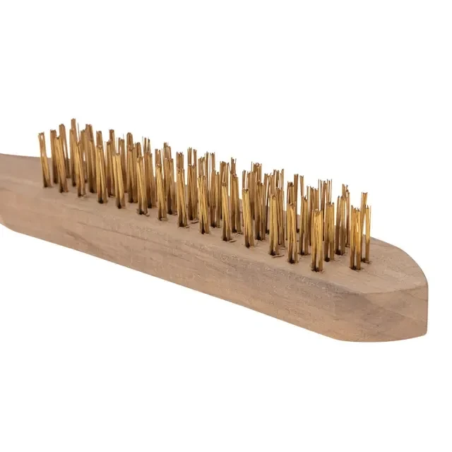 Ручная щетка используется для зачистки металлических, деревянных и других поверхностей от загрязнений, ржавчины и старых лакокрасочных покрытий. Применяется во время строительных и ремонтных работ, оптимально подходит для бытового использования. Пучки проволоки расположены в 4 ряда, что создает достаточно плотную и жесткую поверхность для удаления даже самых стойких загрязнений. Щетина надежно закреплена в основании и не выпадает во время работы. Латунированное покрытие значительно продлевает срок службы щетки. Эргономичная рукоятка, изготовленная из дерева, обеспечивает хороший захват и удобство в работе.