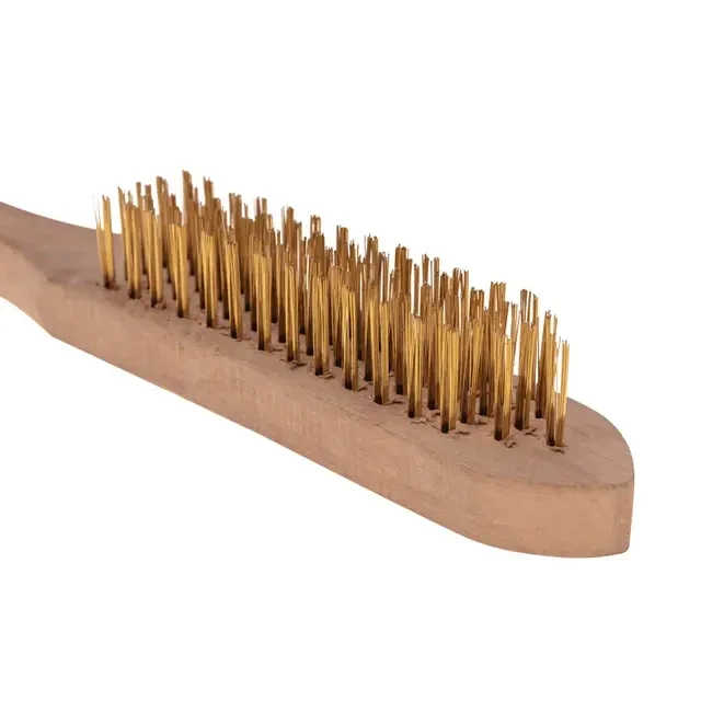 Ручная щетка используется для зачистки металлических, деревянных и других поверхностей от загрязнений, ржавчины и старых лакокрасочных покрытий. Применяется во время строительных и ремонтных работ, оптимально подходит для бытового использования. Пучки прямой проволоки расположены в 5 рядов, что создает более плотный контакт с материалом, повышая производительность. Щетина надежно закреплена в основании и не выпадает во время работы. Латунированное покрытие значительно продлевает срок службы щетки. Эргономичная рукоятка, изготовленная из дерева, обеспечивает хороший захват и удобство в работе.