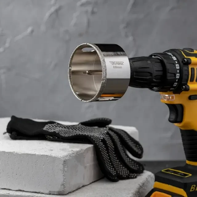 Алмазная коронка диаметром 68 мм используется при сверлении керамогранита, керамики, стекла. Наличие центровочного сверла обеспечивает точное позиционирование коронки на поверхности и помогает избежать смещения во время работ. Покрытие алмазной коронки выполнено гальваническим способом в два слоя, что обеспечивает эффективное сверление и продолжительный рабочий ресурс инструмента. Равномерное распределение алмазов по режущей кромке гарантирует аккуратное сверление материала без трещин и сколов. Высота алмазного слоя в 6 мм обеспечивает высокую производительность, а трехгранный хвостовик – надежную фиксации в патроне. При использовании алмазных коронок для сверления отверстий необходимо охлаждение, которое достигается путем подачи воды в рабочую зону.