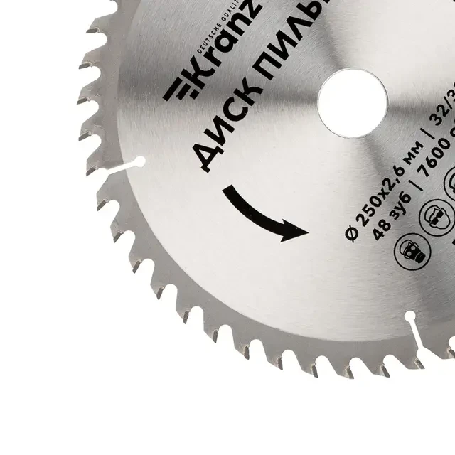 Пильный диск предназначен для пиления древесины различных пород, ДСП, МДФ, допускается распил пластика и алюминия. Рассчитан на выполнение качественных работ, где в приоритете чистота распила. Корпус диска изготовлен из высококачественной закаленной инструментальной стали, благодаря чему устойчив к деформациям. Благодаря твердосплавным напайкам из карбида вольфрама ВК8 твердостью 89-92 HRC и высококачественной лазерной заточке, распил заготовок получается более качественным. Надежную фиксацию напаек к зубьям обеспечивает припой с высоким содержанием серебра. Компенсационные пазы минимизируют деформацию диска при перегреве, в связи с чем диск дольше сохраняет свои рабочие свойства. Используется совместно с торцовочными и циркулярными пилами. Перед использованием оснастки необходимо обратить внимание на допустимое количество оборотов в минуту.