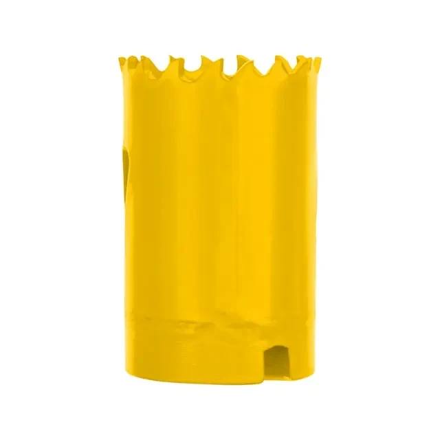 Коронка Bimetal используется во время электромонтажных работ и прокладки коммуникаций. Позволяет получить отверстия большого диаметра в таких материалах как пластик, дерево, сталь, металл и т.д. Применяется совместно с дрелями, перфораторами и стационарными станками. Тело коронки выполнено из инструментальной стали, а зубья с переменным шагом 4-6 мм изготовлены из быстрорежущей стали Р6М5К8, устойчивой к перегреву. Благодаря качеству используемых материалов оснастка отличается долгим ресурсом работы и высокой производительностью. Конструкция оснащена отверстиями, которые компенсируют деформации при перегреве, а также отводят строительную пыль и шлам. Особая заточка зубьев способствует эффективному входу в материал, что позволяет вырезать отверстия правильной круглой формы без сколов и трещин. Коронка используется с шестигранным хвостовиком для сверления при помощи дрели или с хвостовиком SDS PLUS для сверления при помощи перфоратора. Хвостовики приобретаются отдельно. Сверление металла/стали необходимо осуществлять в безударном режиме с применением СОЖ.
