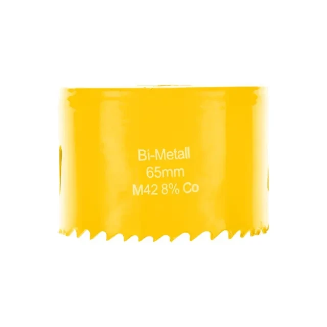 Коронка Bimetal используется во время электромонтажных работ и прокладки коммуникаций. Позволяет получить отверстия большого диаметра в таких материалах как пластик, дерево, сталь, металл и т.д. Применяется совместно с дрелями, перфораторами и стационарными станками. Тело коронки выполнено из инструментальной стали, а зубья с переменным шагом 4-6 мм изготовлены из быстрорежущей стали Р6М5К8, устойчивой к перегреву. Благодаря качеству используемых материалов оснастка отличается долгим ресурсом работы и высокой производительностью. Конструкция оснащена отверстиями, которые компенсируют деформации при перегреве, а также отводят строительную пыль и шлам. Особая заточка зубьев способствует эффективному входу в материал, что позволяет вырезать отверстия правильной круглой формы без сколов и трещин. Коронка используется с шестигранным хвостовиком для сверления при помощи дрели или с хвостовиком SDS PLUS для сверления при помощи перфоратора. Хвостовики приобретаются отдельно. Сверление металла/стали необходимо осуществлять в безударном режиме с применением СОЖ.