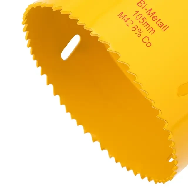 Коронка Bimetal используется во время электромонтажных работ и прокладки коммуникаций. Позволяет получить отверстия большого диаметра в таких материалах как пластик, дерево, сталь, металл и т.д. Применяется совместно с дрелями, перфораторами и стационарными станками. Тело коронки выполнено из инструментальной стали, а зубья с переменным шагом 4-6 мм изготовлены из быстрорежущей стали Р6М5К8, устойчивой к перегреву. Благодаря качеству используемых материалов оснастка отличается долгим ресурсом работы и высокой производительностью. Конструкция оснащена отверстиями, которые компенсируют деформации при перегреве, а также отводят строительную пыль и шлам. Особая заточка зубьев способствует эффективному входу в материал, что позволяет вырезать отверстия правильной круглой формы без сколов и трещин. Коронка используется с шестигранным хвостовиком для сверления при помощи дрели или с хвостовиком SDS PLUS для сверления при помощи перфоратора. Хвостовики приобретаются отдельно. Сверление металла/стали необходимо осуществлять в безударном режиме с применением СОЖ.