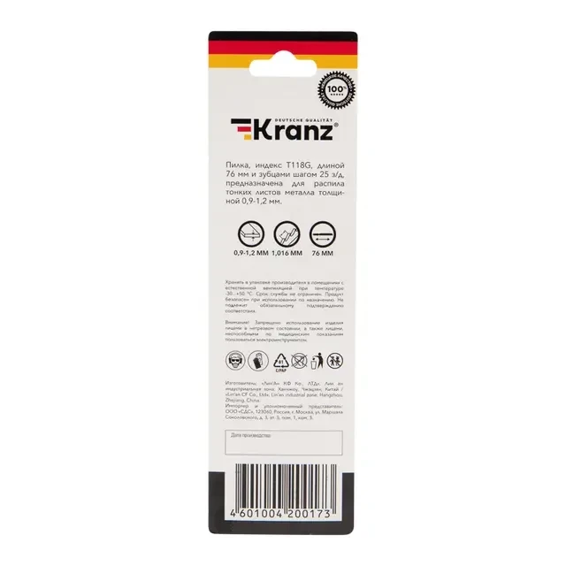 Описание Kranz KR-92-0315 - Купить Пилка для электролобзика по металлу