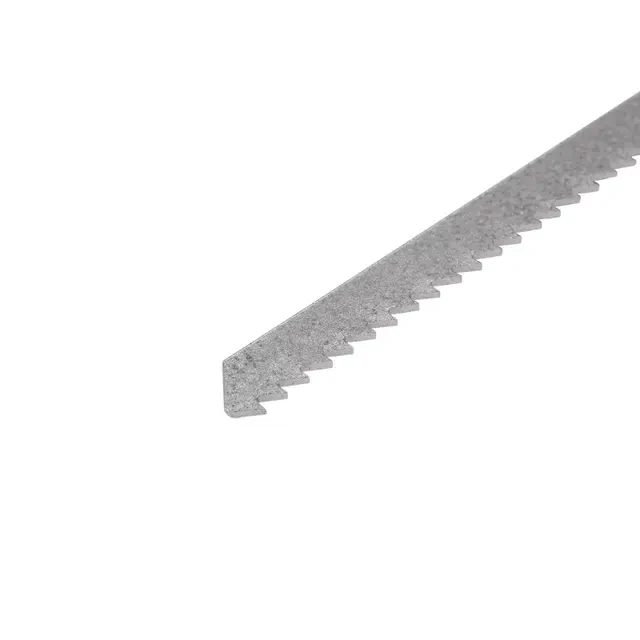 Полотно для электролобзика предназначено для распила металлических листов толщиной от 4 до 20 мм. Подходит как для бытового, так и для профессионального применения, используется при выполнении слесарных работ, также будет полезно в быту. Полотно пилки выполнено из быстрорежущей закаленной стали, благодаря чему оно надолго сохраняет устойчивость к динамическим нагрузкам, а также режущую способность. Режущая кромка состоит из зубьев с шагом 3,2 мм и предназначена для чистого распила. Улучшенная закалка токами высокой частоты увеличивает твердость зубьев и обеспечивает высокий ресурс. Универсальный Т-образный хвостовик подходит для установки на большинство моделей электролобзиков. Комплект состоит из двух полотен и рассчитан на выполнение большого объема работ.