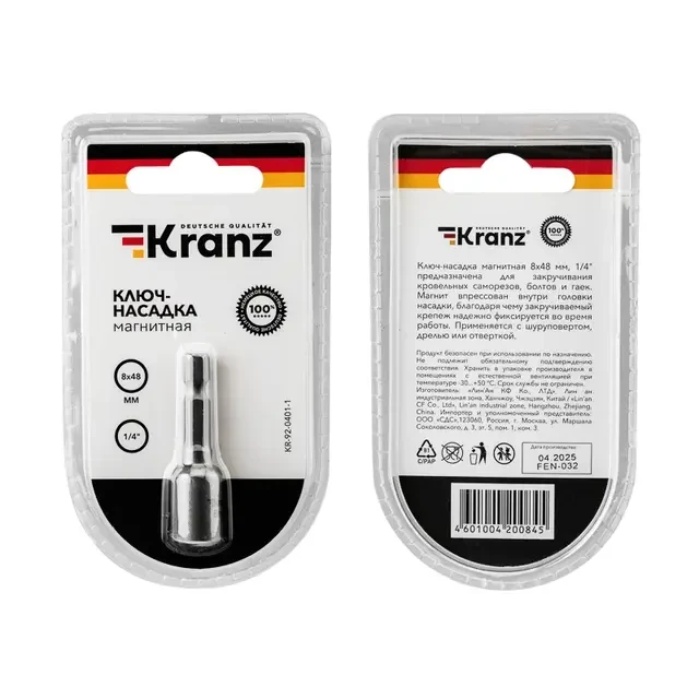 Ключ-насадка магнитная1/4" 8х48 мм (1 шт./уп.) Kranz