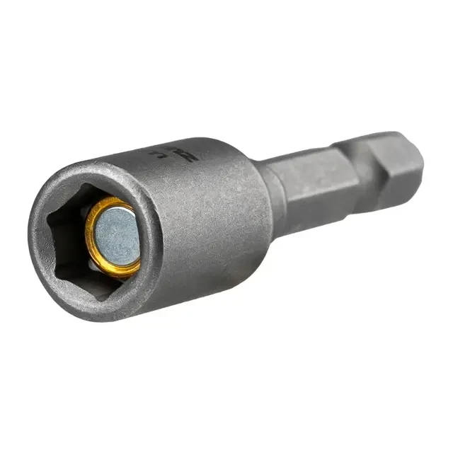 Ключ-насадка предназначен для работы с кровельными саморезами, гайками и винтами с внешним шестигранником. Используется с шуруповертом, дрелью или с отверткой-адаптером. Изготовлен из высококачественной стали CrV, благодаря чему устойчив к статическим и динамическим нагрузкам и износу. Внутрь головки ключа впрессован магнит, который надежно удерживает крепеж. Шестигранный хвостовик обеспечивает надежное закрепление ключа в патроне инструмента и не дает проворачиваться ключу. Благодаря хвостовику подойдет для установки на все виды шуруповертов и отверток-адаптеров.