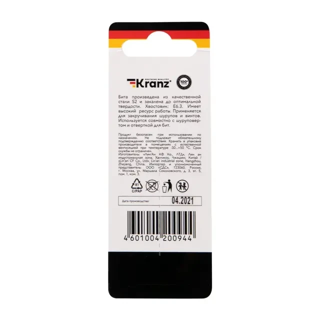 Описание Kranz KR-92-0415-1 - Купить Бита для шуруповерта PH2