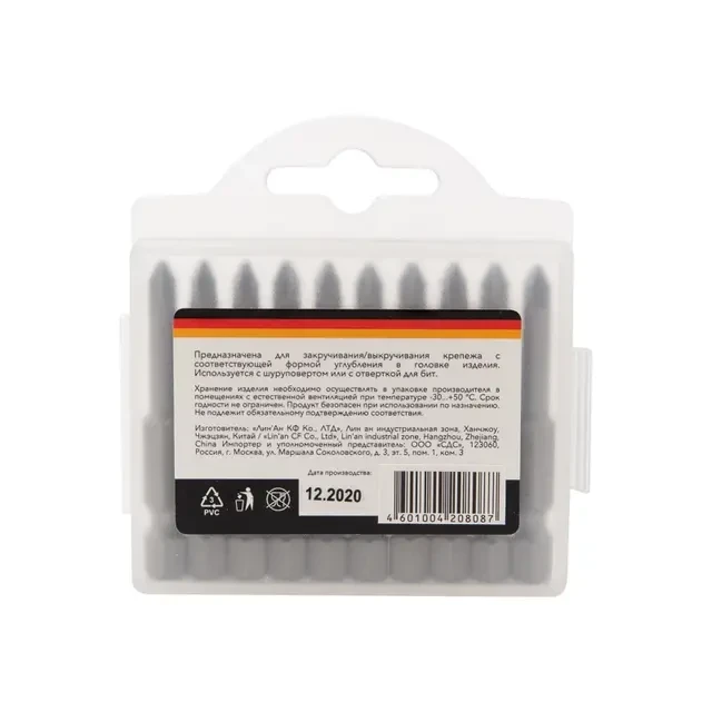 Бита PZ1 используется в качестве сменной насадки на шуруповерт или отвертку-адаптер для работы с крепежом. Изготовлена из легированной высокопрочной стали S2, что дает повышенную устойчивость к изломам и деформации в наиболее нагружаемых точках касания. Размер наконечника PZ1 подходит для работы со шлицами с резьбовым диаметром 2,1-3 мм. Намагниченный наконечник облегчает крепление и фиксацию крепежа на бите. Шестигранный хвостовик надежно фиксирует биту в патроне инструмента и не дает ей проворачиваться. Благодаря хвостовику такая бита подойдет для установки на все виды шуруповертов и отверток-адаптеров. Удобная пластиковая групповая упаковка по 10 шт. обеспечивает удобство и дополнительную выгоду при отпуске товара по 1 шт.