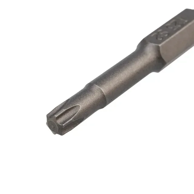 Бита T-25 используется в качестве сменной насадки на шуруповерт или отвертку-адаптер для работы с крепежом. Изготовлена из легированной высокопрочной стали S2, что дает повышенную устойчивость к изломам и деформации в наиболее нагружаемых точках касания. Размер наконечника T-25 подходит для работы со шлицами с резьбовым диаметром 4,43 мм. Намагниченный наконечник облегчает крепление и фиксацию крепежа на бите. Шестигранный хвостовик надежно фиксирует биту в патроне инструмента и не дает ей проворачиваться. Благодаря хвостовику такая бита подойдет для установки на все виды шуруповертов и отверток-адаптеров. Удобная пластиковая групповая упаковка по 10 шт. обеспечивает удобство и дополнительную выгоду при отпуске товара по 1 шт.