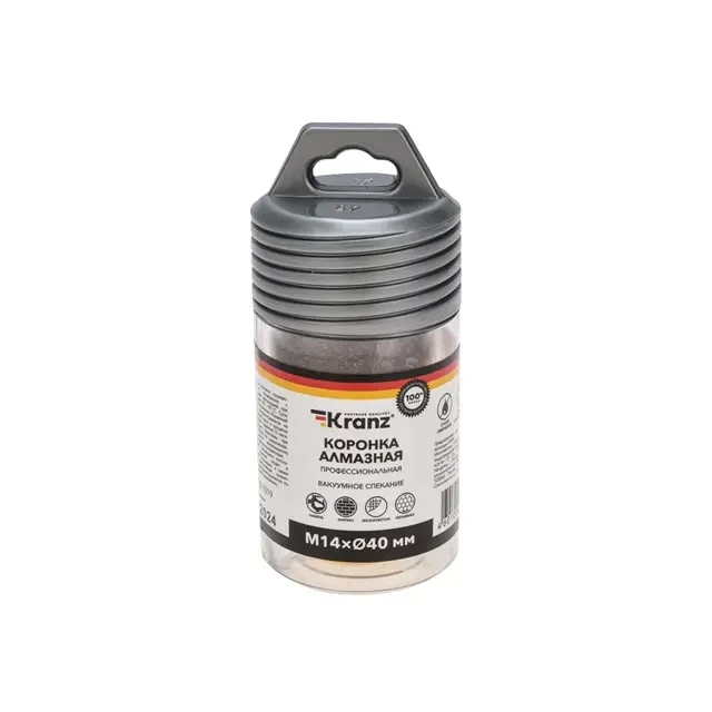 Коронка алмазная профессиональная по керамограниту и железобетону М14, вакуумное спекание, 40мм, для УШМ KRANZ