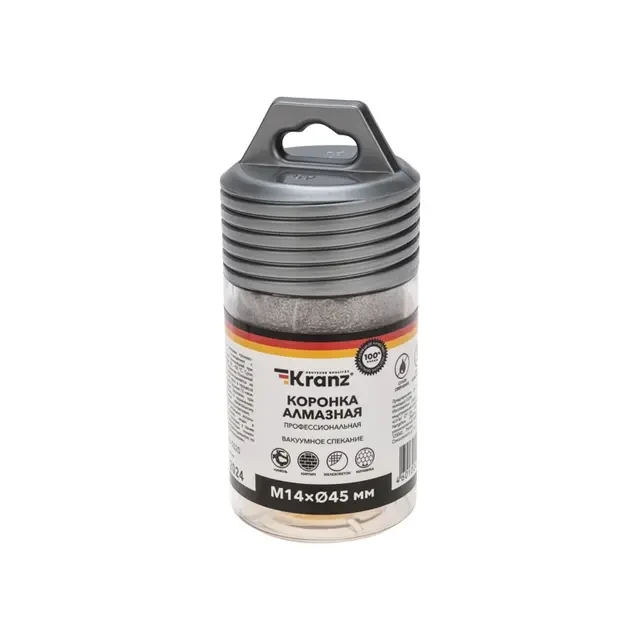 Коронка алмазная профессиональная по керамограниту и железобетону М14, вакуумное спекание, 45мм, для УШМ KRANZ