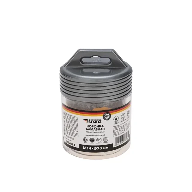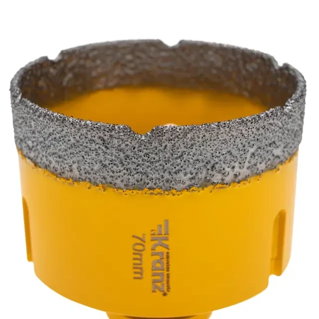 Коронка алмазная профессиональная по керамограниту и железобетону М14, вакуумное спекание, 70мм, для УШМ KRANZ