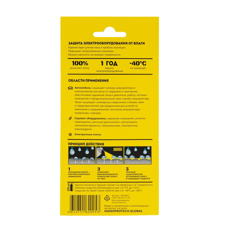 Супер изоляция – эффективное средство, которое на 100% вытесняет влагу, обеспечивая надежную защиту бытовой и промышленной электрики, а также электроники. Благодаря своим уникальным свойствам состав восстанавливает работу поврежденного влагой электрооборудования без необходимости его разборки. Эффективно предотвращает утечку тока и пробой изоляции. Применение средства значительно увеличивает срок службы устройств и оборудования, позволяя работать без сбоев в течение длительного периода времени. Надежная защита, создаваемая супер изоляцией, гарантирована как минимум на протяжении 1 года. Удобная упаковка объемом 210 мл обеспечивает простоту применения.